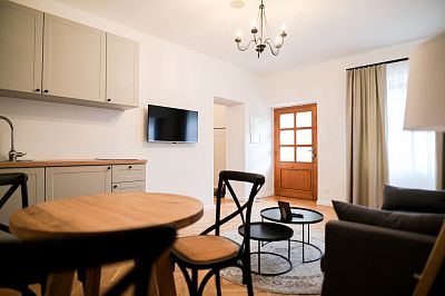 Apartmán je ideálny pre páry aj rodiny, ktoré hľadajú viac priestoru a pohodlie s raňajkami v cene.